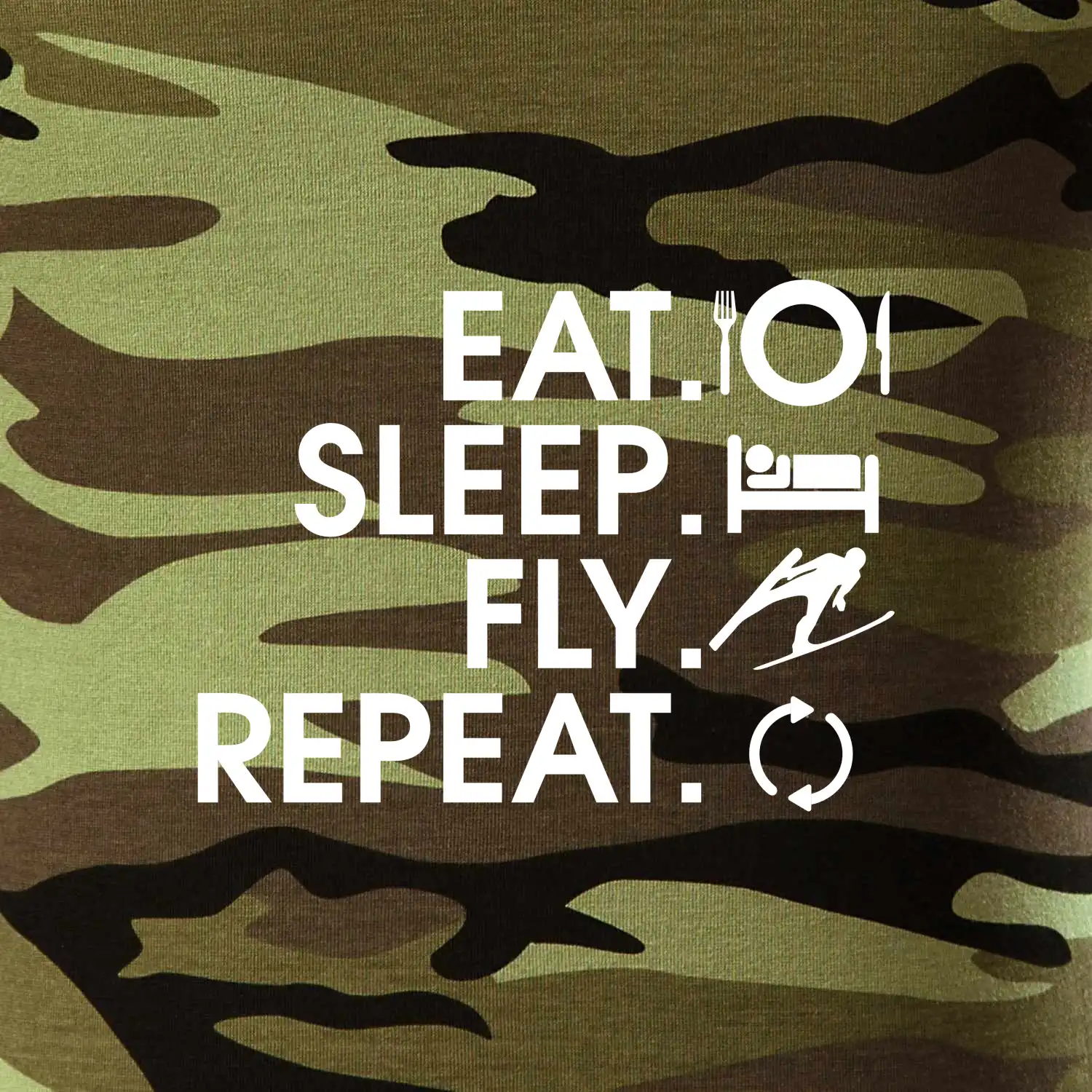 Eat sleep fly repeat - skoky na lyžiach