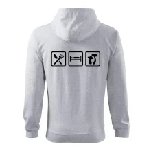 Pánska mikina MALFINI Adventure 407 je vynikajúcou voľbou pre tých, ktorí hľadajú štýl, pohodlie a praktickosť v jednom. Vyrobená z kvalitnej výplňovej pleteniny (65 % bavlna, 35 % polyester; pri farbe 12: 85 % bavlna, 15 % viskóza) s gramážou 300 g/m² a počesanou vnútornou stranou typu Terry, ktorá zabezpečuje teplo a mäkkosť. Mikina má rovný strih s bočnými dielmi, celoprepínací kovový zips a stojačik z rebrovaného úpletu 2:2 s 5 % elastanu pre väčšiu pružnosť. Vnútorný výstrih je začistený kontrastnou páskou, čo dodáva odolnosť aj estetický vzhľad. Praktické našité vrecká typu „klokanka“, spodný lem, manžety a lemy vreciek sú rovnako z rebrovaného úpletu s elastanom, čo zaručuje perfektné prispôsobenie. Vhodná na potlač alebo výšivku, ideálna na bežné nosenie, prácu alebo voľný čas. Dostupná v rôznych farbách (napr. čierna, tmavomodrá, červená, khaki) a veľkostiach S-3XL.