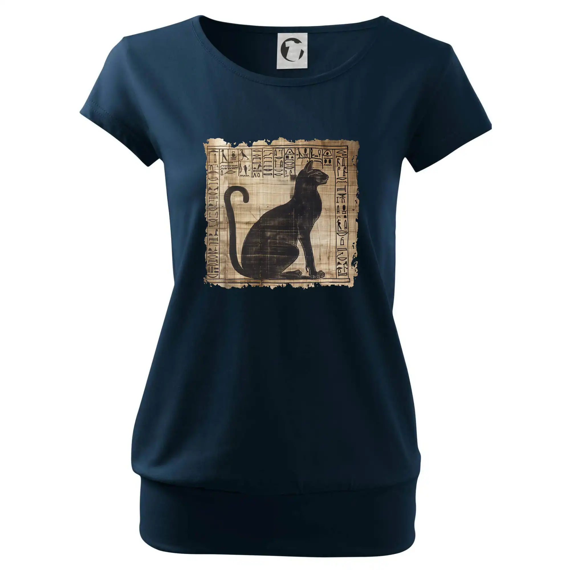Trendové dámske tričko s veľmi krátkym rukávom, voľnejšieho strihu, v dolnom kraji všité do širokého lemu. Okrúhly priekrčník s úzkym lemom zo zhodného materiálu.