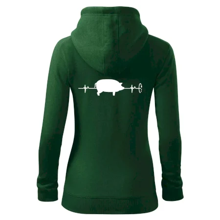 Dámska mikina MALFINI Trendy Zipper 411 spája moderný vzhľad s každodennou praktickosťou. Jej ľahko vypasovaný strih s bočnými švami zvýrazňuje ženskú siluetu, zatiaľ čo celoprepínací zips a kapucňa so sťahovacou šnúrkou dodávajú ležérny nádych. Našité vrecká typu „klokanka“ ponúkajú dostatok priestoru na drobnosti. Materiál s počesanou vnútornou stranou zabezpečuje mäkkosť a teplo vďaka zmesi bavlny a polyesteru.