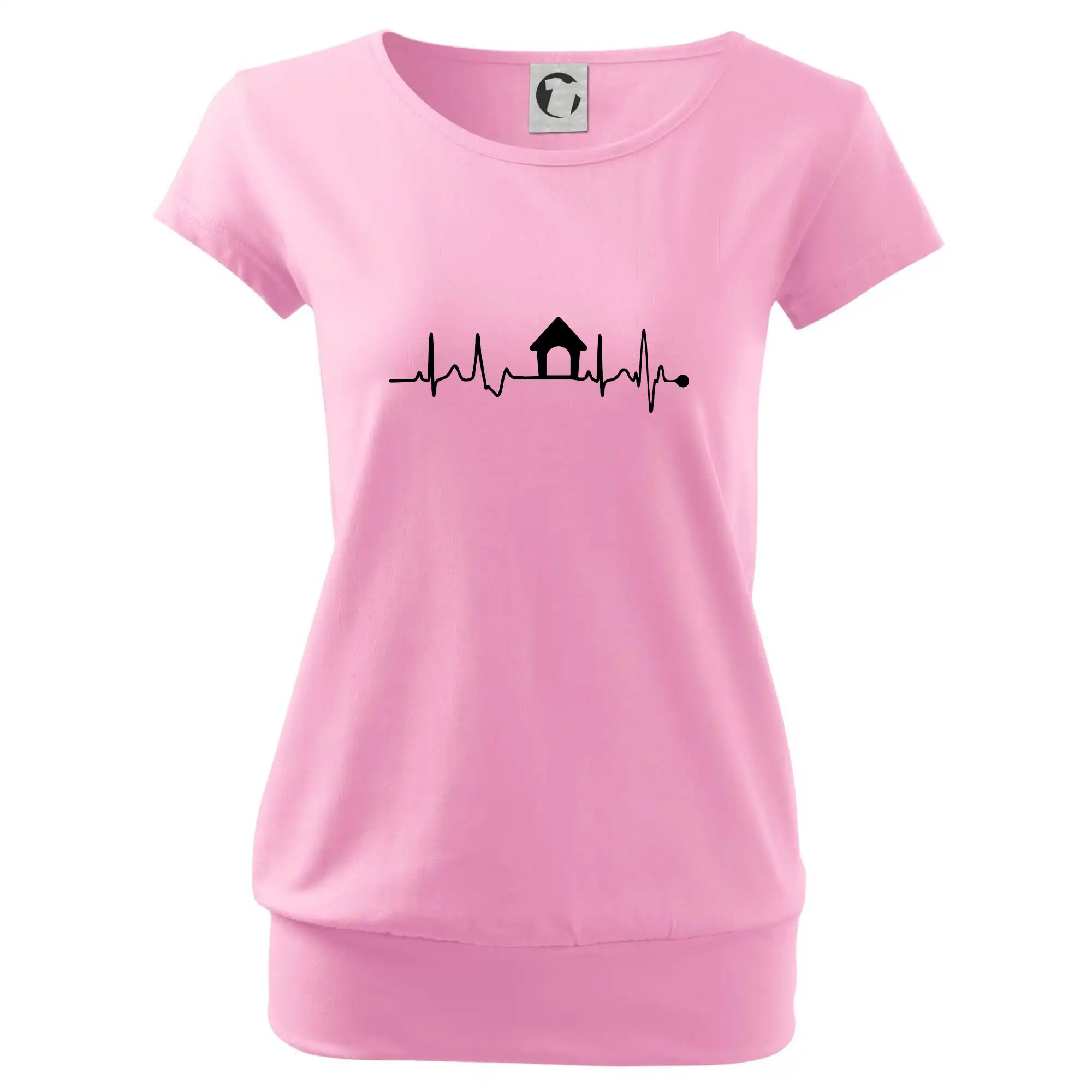 Trendové dámske tričko s veľmi krátkym rukávom, voľnejšieho strihu, v dolnom kraji všité do širokého lemu. Okrúhly priekrčník s úzkym lemom zo zhodného materiálu.