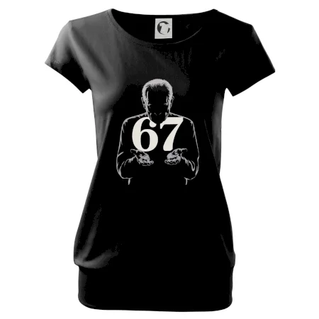 Trendové dámske tričko s veľmi krátkym rukávom, voľnejšieho strihu, v dolnom kraji všité do širokého lemu. Okrúhly priekrčník s úzkym lemom zo zhodného materiálu.
