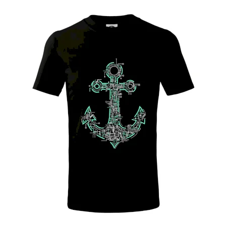 Detské tričko strednej gramáže s bočnými švami. Úzky priekrčník s prídavkom 5% elastanu. Vnútorná časť zadného priekrčníka začistená tkanou páskou. Spevnený ramenný šev.