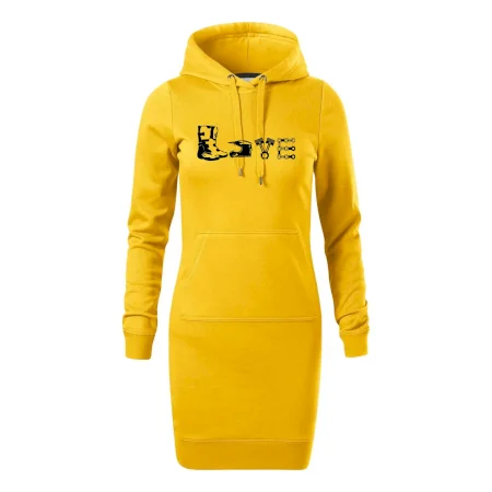 Dámske mikinové šaty MALFINI Snap 419 sú ideálnou voľbou pre ženy, ktoré hľadajú pohodlný a štýlový kúsok na voľný čas alebo každodenné nosenie. Ľahko vypasovaný strih s bočnými švami podčiarkuje ženskú siluetu, zatiaľ čo kapucňa s podšívkou a sťahovacou šnúrkou dodáva ležérny vzhľad. Šaty majú dĺžku nad kolená a sú vybavené našitým vreckom v štýle „klokanky“. Materiál je mäkký a príjemný na dotyk grâce à smesi bavlny a polyesteru s nepočesanou vnútornou stranou.