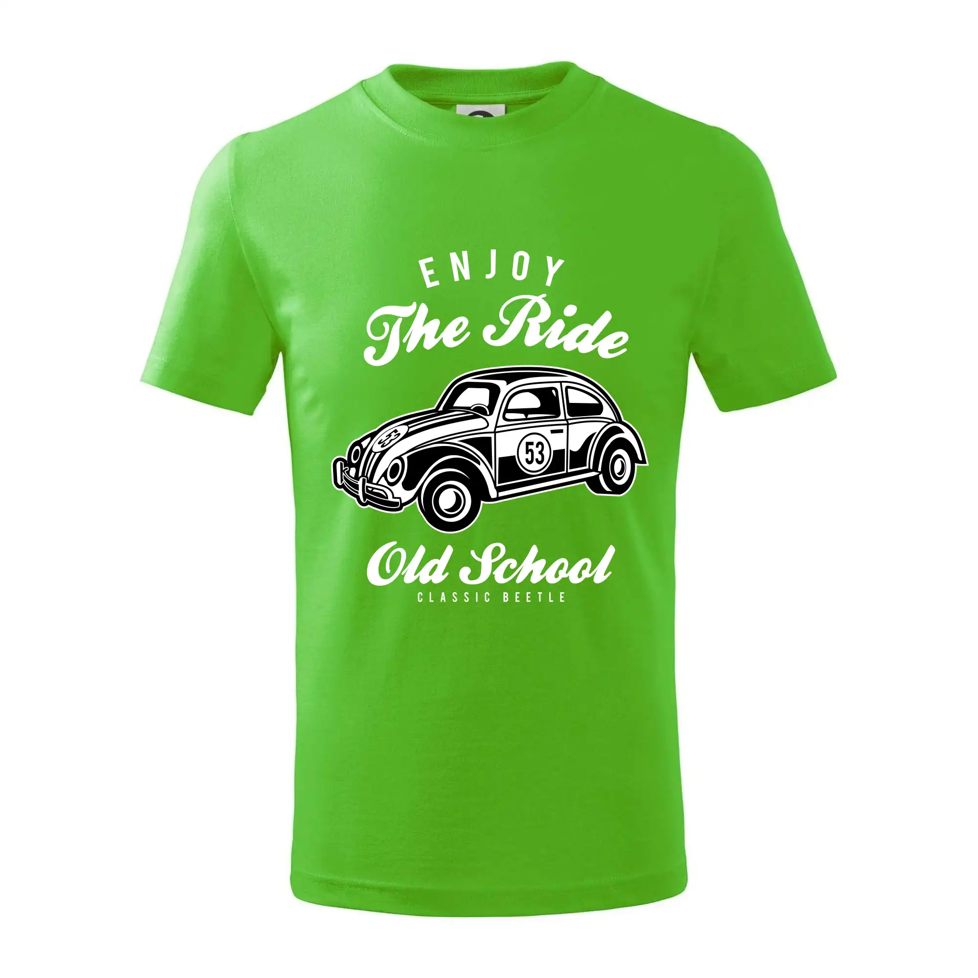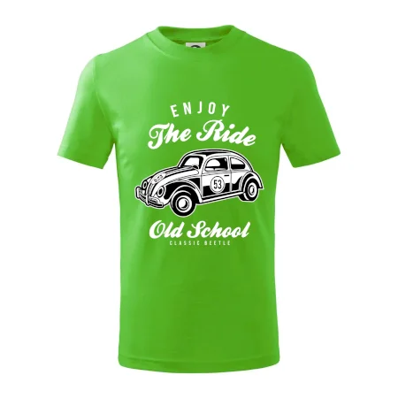 Detské tričko strednej gramáže s bočnými švami. Úzky priekrčník s prídavkom 5% elastanu. Vnútorná časť zadného priekrčníka začistená tkanou páskou. Spevnený ramenný šev.