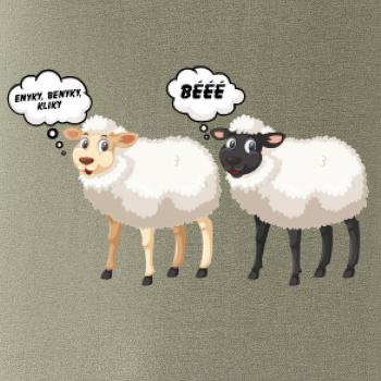 Vtipné tričko pre každého. Napríklad tričko pre syna, dcéru, zábavné tričko ako perfektný darček na narodeniny či Vianoce. Tričko s ovcami enyky benyky kliky bééé.