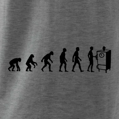 Dárek pro majitele udírny tričko s udírnou pro to správné uzeníčko. Skvělý doplněk na uzení k udírně. Ukaž všem, že evoluce směřovala k tomu momentu správně vyuzeného masa.