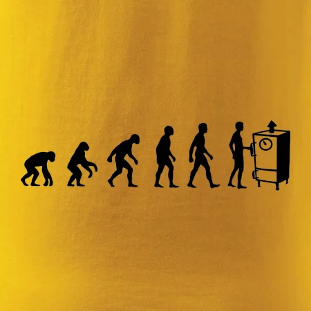Dárek pro majitele udírny tričko s udírnou pro to správné uzeníčko. Skvělý doplněk na uzení k udírně. Ukaž všem, že evoluce směřovala k tomu momentu správně vyuzeného masa.