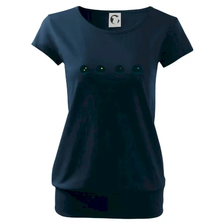 Trendové dámske tričko s veľmi krátkym rukávom, voľnejšieho strihu, v dolnom kraji všité do širokého lemu. Okrúhly priekrčník s úzkym lemom zo zhodného materiálu.