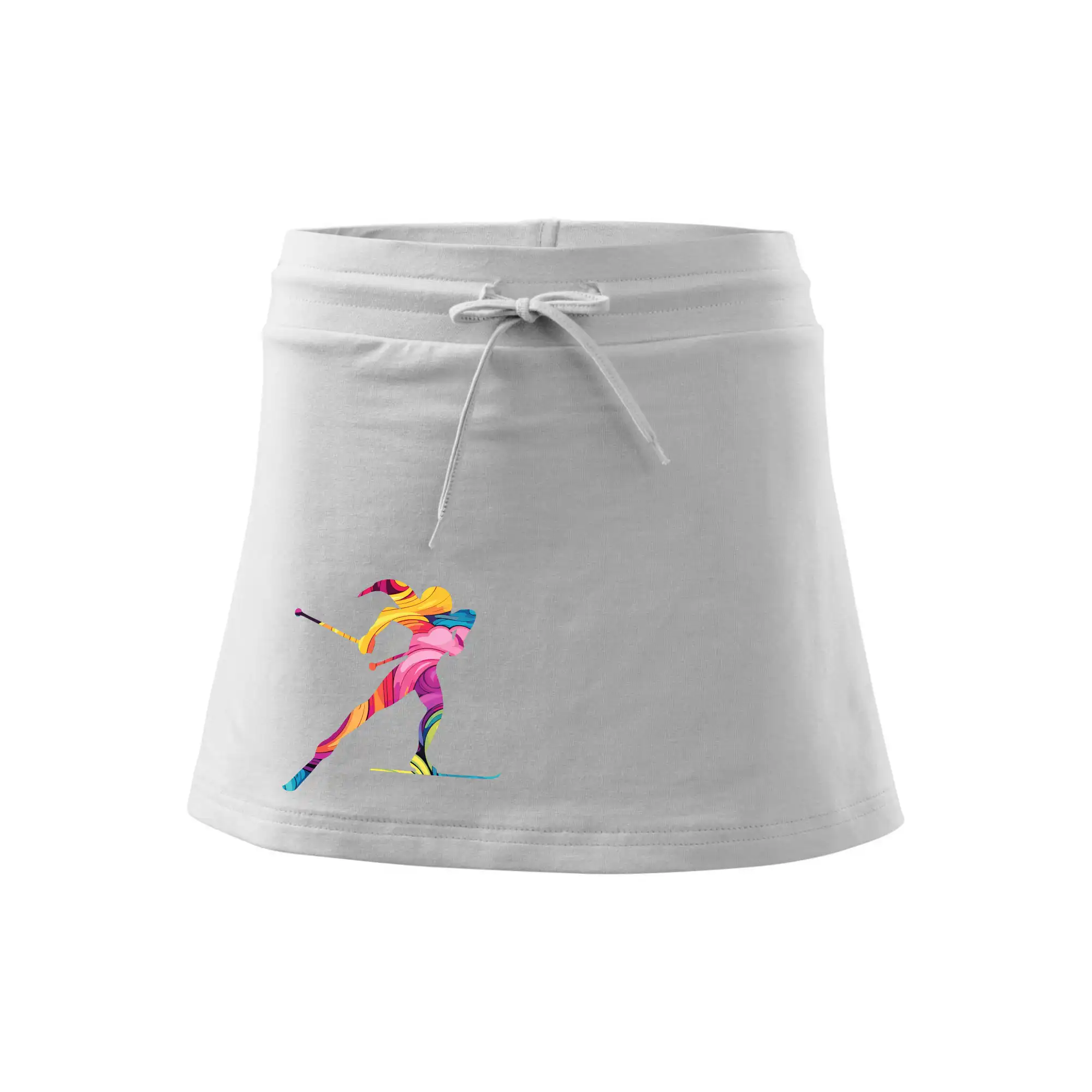 Dámska kraťasová sukňa MALFINI Two in One 604 je perfektnou kombináciou sukne a šortiek, ideálna na šport, voľný čas alebo ležérne nosenie. Vďaka prídavku elastanu si sukňa zachováva tvar a ponúka pohodlie pri pohybe. Krátky strih do tvaru „A“ a široký elastický pás so sťahovacou šnúrkou zabezpečujú voľnosť a prispôsobenie.