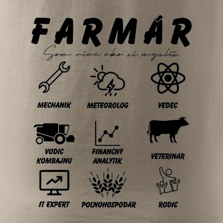 Tričká a mikiny pre kombajnistu, traktoristu a farmára. Tričko, na ktorom je zobrazená práca farmára, ktorá spočíva z viacerých úkonov ako si myslíš. Tričko je vhodný darček pre každého farmára, ktorý miluje svoju prácu.