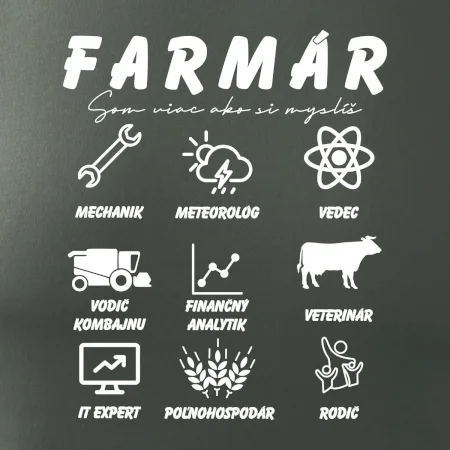 Tričká a mikiny pre kombajnistu, traktoristu a farmára. Tričko, na ktorom je zobrazená práca farmára, ktorá spočíva z viacerých úkonov ako si myslíš. Tričko je vhodný darček pre každého farmára, ktorý miluje svoju prácu.