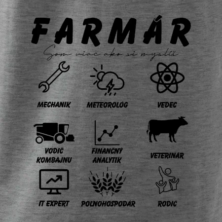 Tričká a mikiny pre kombajnistu, traktoristu a farmára. Tričko, na ktorom je zobrazená práca farmára, ktorá spočíva z viacerých úkonov ako si myslíš. Tričko je vhodný darček pre každého farmára, ktorý miluje svoju prácu.
