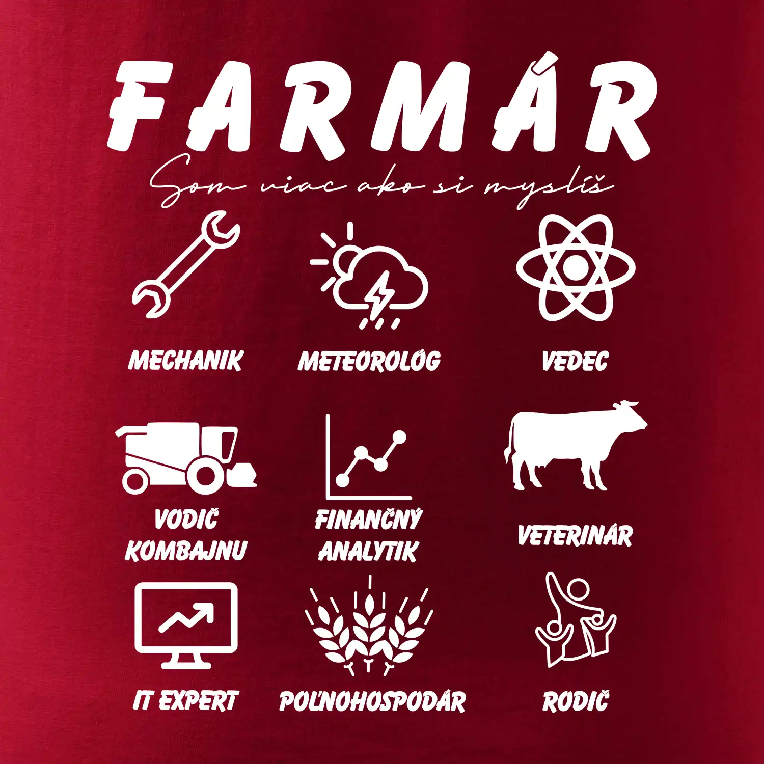 Tričká a mikiny pre kombajnistu, traktoristu a farmára. Tričko, na ktorom je zobrazená práca farmára, ktorá spočíva z viacerých úkonov ako si myslíš. Tričko je vhodný darček pre každého farmára, ktorý miluje svoju prácu.