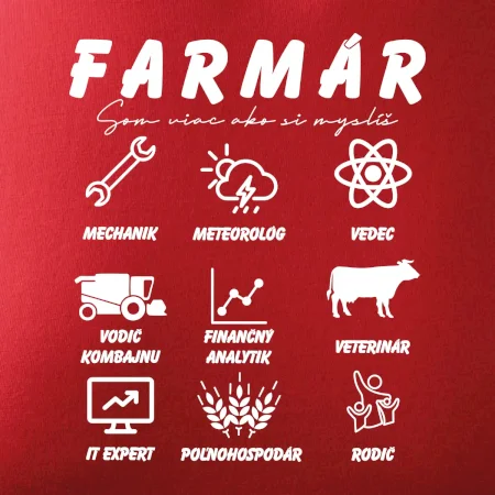 Tričká a mikiny pre kombajnistu, traktoristu a farmára. Tričko, na ktorom je zobrazená práca farmára, ktorá spočíva z viacerých úkonov ako si myslíš. Tričko je vhodný darček pre každého farmára, ktorý miluje svoju prácu.