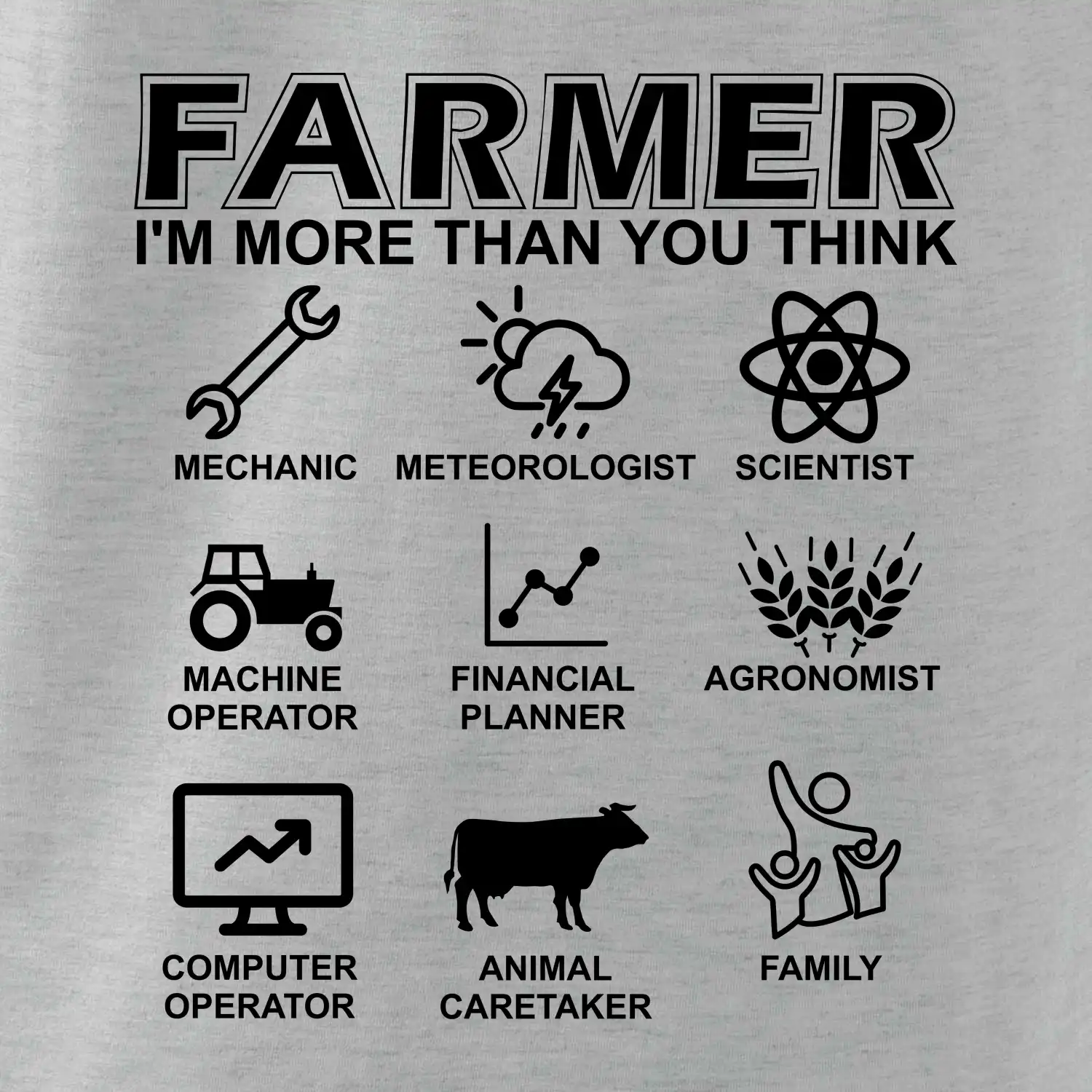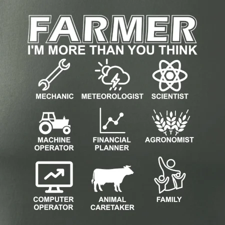 Tričká a mikiny pre kombajnistu, traktoristu a farmára. Tričko, na ktorom je zobrazená práca farmára, ktorá spočíva z viacerých úkonov ako si myslíš. Tričko je vhodný darček pre každého farmára, ktorý miluje svoju prácu.