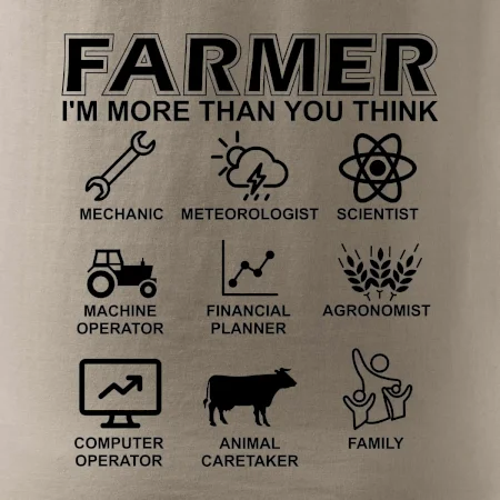 Tričká a mikiny pre kombajnistu, traktoristu a farmára. Tričko, na ktorom je zobrazená práca farmára, ktorá spočíva z viacerých úkonov ako si myslíš. Tričko je vhodný darček pre každého farmára, ktorý miluje svoju prácu.