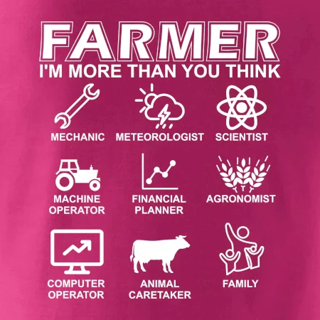Tričká a mikiny pre kombajnistu, traktoristu a farmára. Tričko, na ktorom je zobrazená práca farmára, ktorá spočíva z viacerých úkonov ako si myslíš. Tričko je vhodný darček pre každého farmára, ktorý miluje svoju prácu.