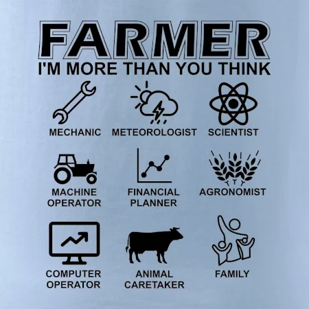 Tričká a mikiny pre kombajnistu, traktoristu a farmára. Tričko, na ktorom je zobrazená práca farmára, ktorá spočíva z viacerých úkonov ako si myslíš. Tričko je vhodný darček pre každého farmára, ktorý miluje svoju prácu.