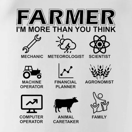Tričká a mikiny pre kombajnistu, traktoristu a farmára. Tričko, na ktorom je zobrazená práca farmára, ktorá spočíva z viacerých úkonov ako si myslíš. Tričko je vhodný darček pre každého farmára, ktorý miluje svoju prácu.