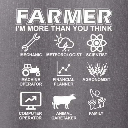 Tričká a mikiny pre kombajnistu, traktoristu a farmára. Tričko, na ktorom je zobrazená práca farmára, ktorá spočíva z viacerých úkonov ako si myslíš. Tričko je vhodný darček pre každého farmára, ktorý miluje svoju prácu.