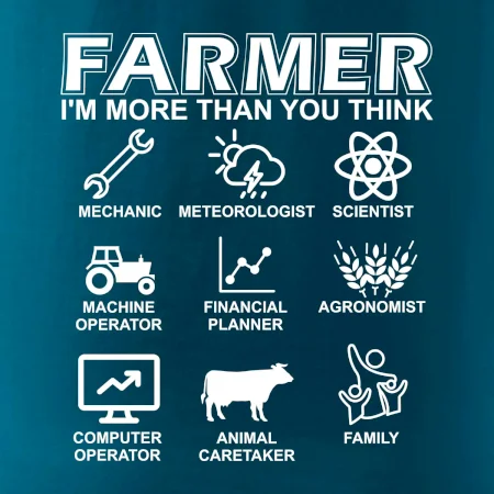 Tričká a mikiny pre kombajnistu, traktoristu a farmára. Tričko, na ktorom je zobrazená práca farmára, ktorá spočíva z viacerých úkonov ako si myslíš. Tričko je vhodný darček pre každého farmára, ktorý miluje svoju prácu.