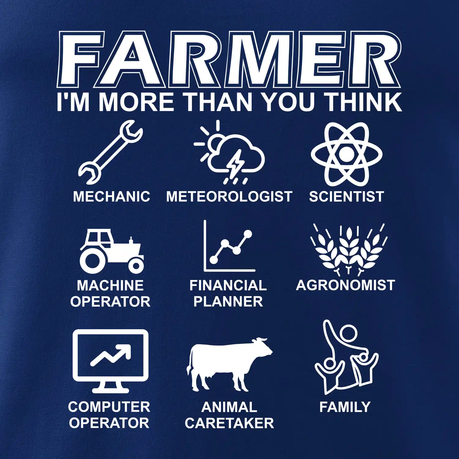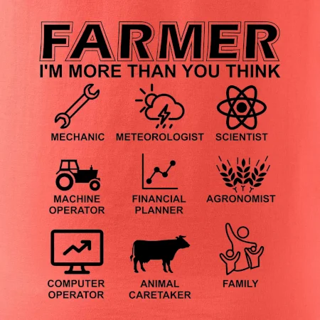 Tričká a mikiny pre kombajnistu, traktoristu a farmára. Tričko, na ktorom je zobrazená práca farmára, ktorá spočíva z viacerých úkonov ako si myslíš. Tričko je vhodný darček pre každého farmára, ktorý miluje svoju prácu.