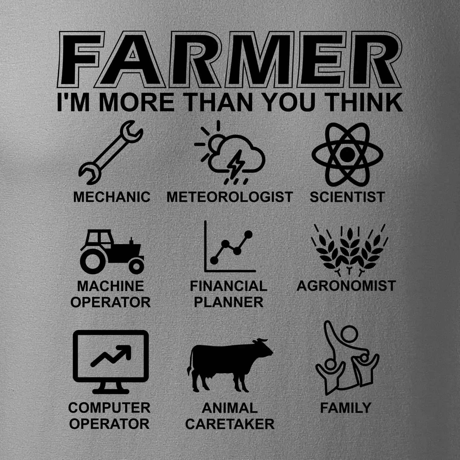 Tričká a mikiny pre kombajnistu, traktoristu a farmára. Tričko, na ktorom je zobrazená práca farmára, ktorá spočíva z viacerých úkonov ako si myslíš. Tričko je vhodný darček pre každého farmára, ktorý miluje svoju prácu.