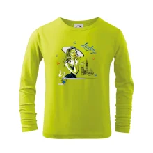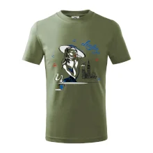 Detské tričko strednej gramáže s bočnými švami. Úzky priekrčník s prídavkom 5% elastanu. Vnútorná časť zadného priekrčníka začistená tkanou páskou. Spevnený ramenný šev.