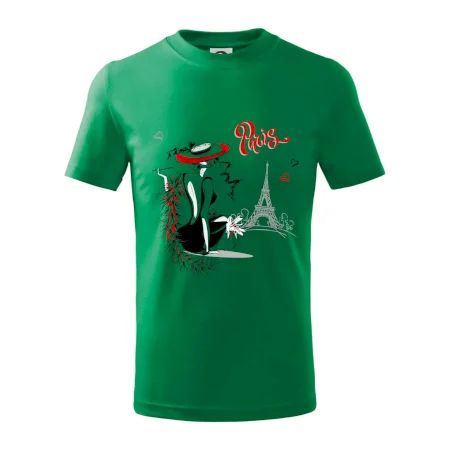 Detské tričko strednej gramáže s bočnými švami. Úzky priekrčník s prídavkom 5% elastanu. Vnútorná časť zadného priekrčníka začistená tkanou páskou. Spevnený ramenný šev.
