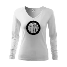 Tolerantnejšie priliehavý dámsky strih, ktorý je vhodný pre všetky typy postavy, ideálna dĺžka rukávov a konzervatívny výstrih zakončený rebrovaním, ktoré skvele drží tvar.
