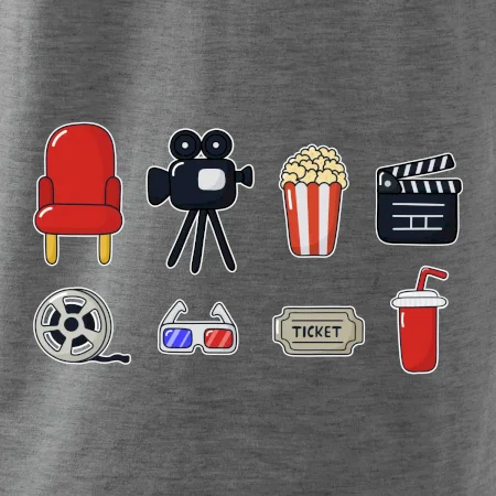 Skvelý motív nielen na cestu do kina, ale napríklad aj domov k televízií. Darček pre filmového nadšenca alebo znalca filmov. Tričko s popcornom bude tvoj skvelý spoločník ku sledovaniu filmov.