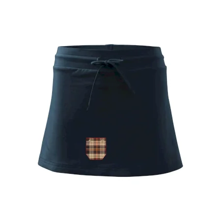 Dámska kraťasová sukňa MALFINI Two in One 604 je perfektnou kombináciou sukne a šortiek, ideálna na šport, voľný čas alebo ležérne nosenie. Vďaka prídavku elastanu si sukňa zachováva tvar a ponúka pohodlie pri pohybe. Krátky strih do tvaru „A“ a široký elastický pás so sťahovacou šnúrkou zabezpečujú voľnosť a prispôsobenie.