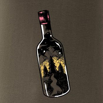 Fľaša, v ktorej je celý svet. tričko s fľašou, v ktorej je les a hory je vhodný darček pre cestovateľa. Každý kto má rád cestovanie a turistika je jeho obľúbená činnosť, by si mal toto tričko zaobstarať. tričko pre kempistov by si mal zaobstarať každý správny lesák.