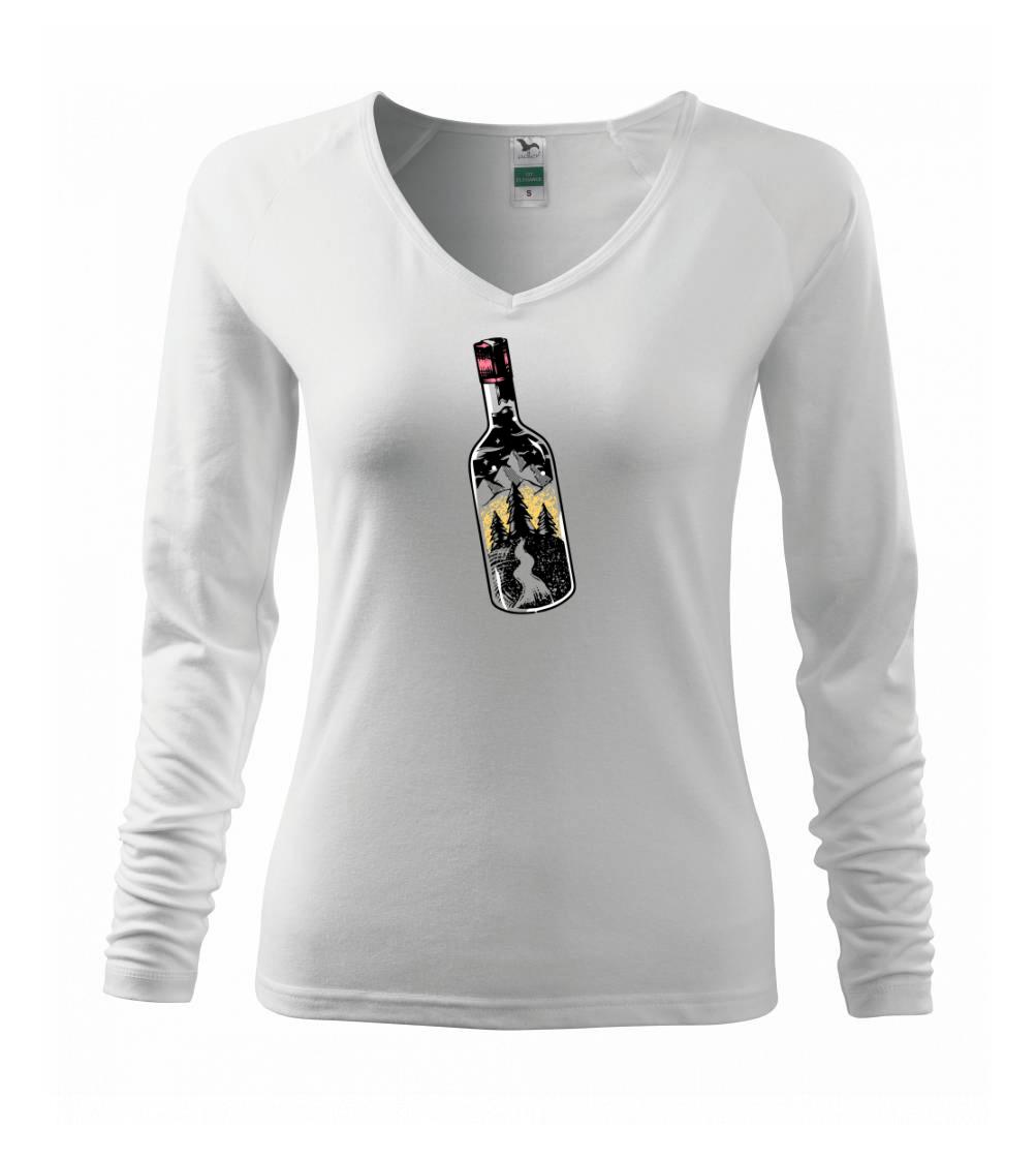 Fľaša, v ktorej je celý svet. tričko s fľašou, v ktorej je les a hory je vhodný darček pre cestovateľa. Každý kto má rád cestovanie a turistika je jeho obľúbená činnosť, by si mal toto tričko zaobstarať. tričko pre kempistov by si mal zaobstarať každý správny lesák.