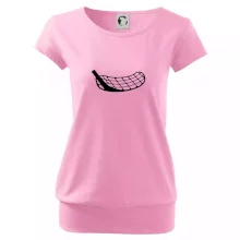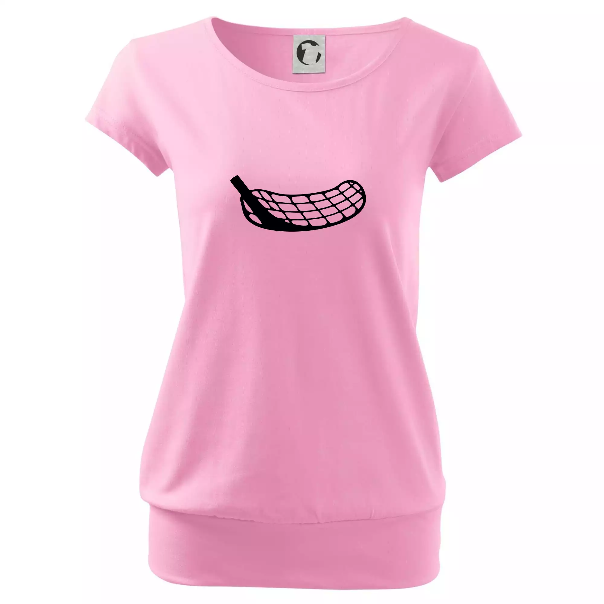 Trendové dámske tričko s veľmi krátkym rukávom, voľnejšieho strihu, v dolnom kraji všité do širokého lemu. Okrúhly priekrčník s úzkym lemom zo zhodného materiálu.