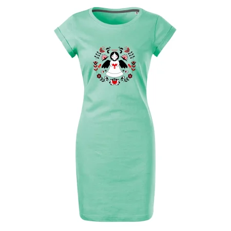Tričkošaty MALFINI Freedom 178 sú ideálne pre ženy, ktoré hľadajú pohodlný a vzdušný kúsok na letné dni alebo voľnočasové aktivity. Voľný, ľahko tvarovaný strih s bočnými švami ponúka maximálne pohodlie a voľnosť pohybu. Dĺžka nad kolená a hlbší okrúhly výstrih dodávajú šatám svieži vzhľad, zatiaľ čo ohrnuté rukávy pripevnené šitím v štyroch bodoch pridávajú moderný detail. Kvalitný bavlnený materiál je mäkký a priedušný, s úzkym lemom výstrihu obsahujúcim elastan pre jednoduché obliekanie.