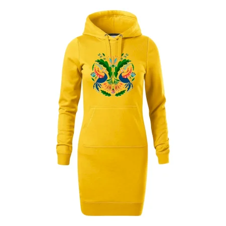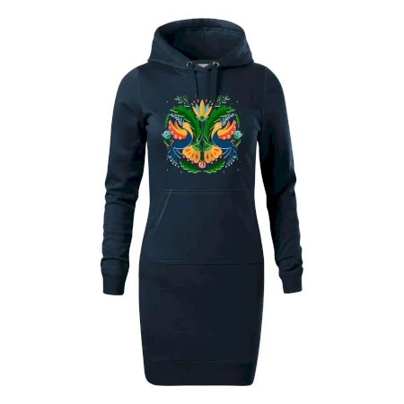 Dámske mikinové šaty MALFINI Snap 419 sú ideálnou voľbou pre ženy, ktoré hľadajú pohodlný a štýlový kúsok na voľný čas alebo každodenné nosenie. Ľahko vypasovaný strih s bočnými švami podčiarkuje ženskú siluetu, zatiaľ čo kapucňa s podšívkou a sťahovacou šnúrkou dodáva ležérny vzhľad. Šaty majú dĺžku nad kolená a sú vybavené našitým vreckom v štýle „klokanky“. Materiál je mäkký a príjemný na dotyk grâce à smesi bavlny a polyesteru s nepočesanou vnútornou stranou.