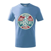 Detské tričko strednej gramáže s bočnými švami. Úzky priekrčník s prídavkom 5% elastanu. Vnútorná časť zadného priekrčníka začistená tkanou páskou. Spevnený ramenný šev.