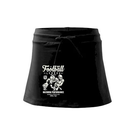 Dámska kraťasová sukňa MALFINI Two in One 604 je perfektnou kombináciou sukne a šortiek, ideálna na šport, voľný čas alebo ležérne nosenie. Vďaka prídavku elastanu si sukňa zachováva tvar a ponúka pohodlie pri pohybe. Krátky strih do tvaru „A“ a široký elastický pás so sťahovacou šnúrkou zabezpečujú voľnosť a prispôsobenie.