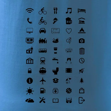Cestovateľské tričká pre jednoduchšiu dohodu. Šikovné tričko s ikonami na cestovanie, dohodneš sa s každým!