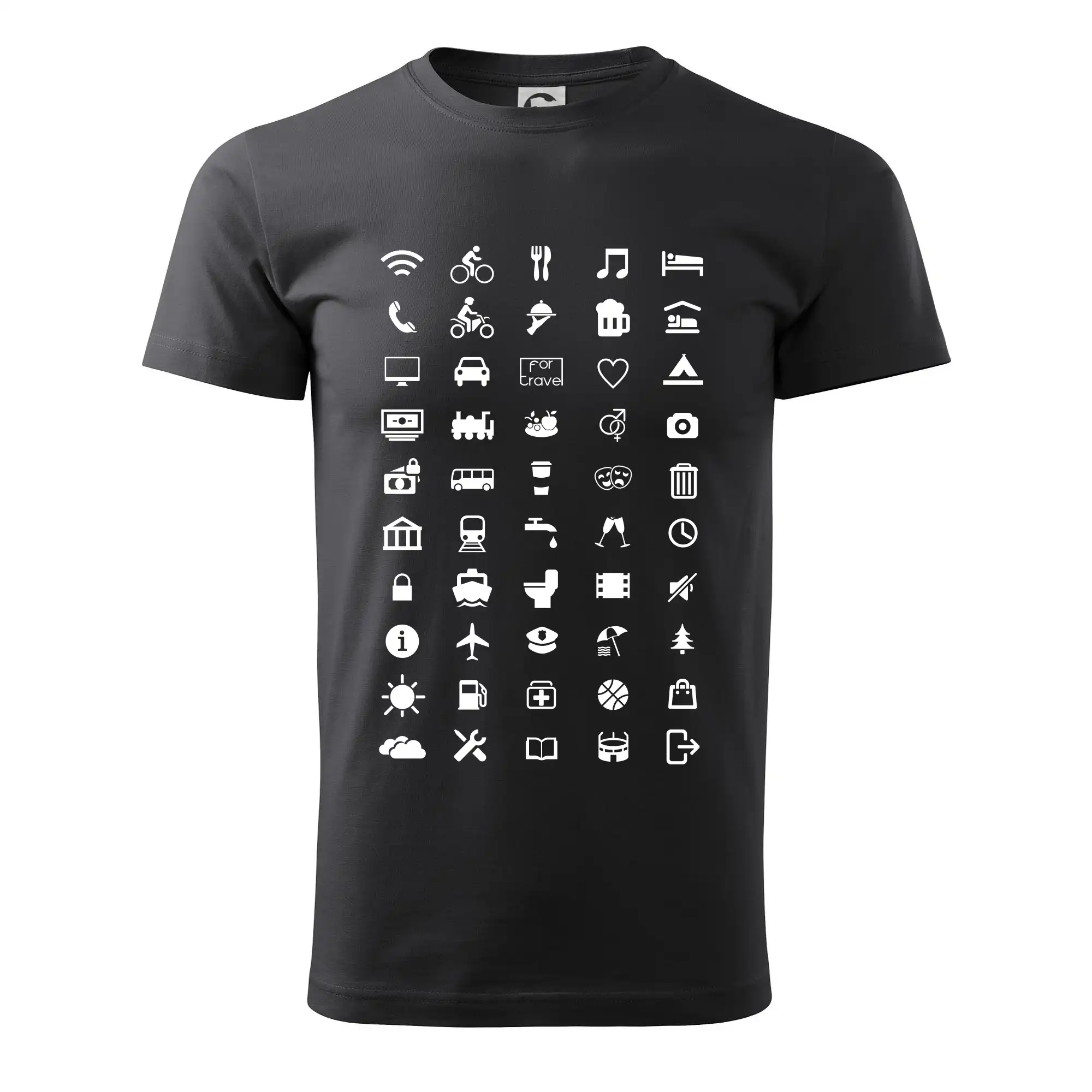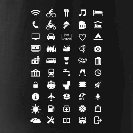 Cestovateľské tričká pre jednoduchšiu dohodu. Šikovné tričko s ikonami na cestovanie, dohodneš sa s každým!