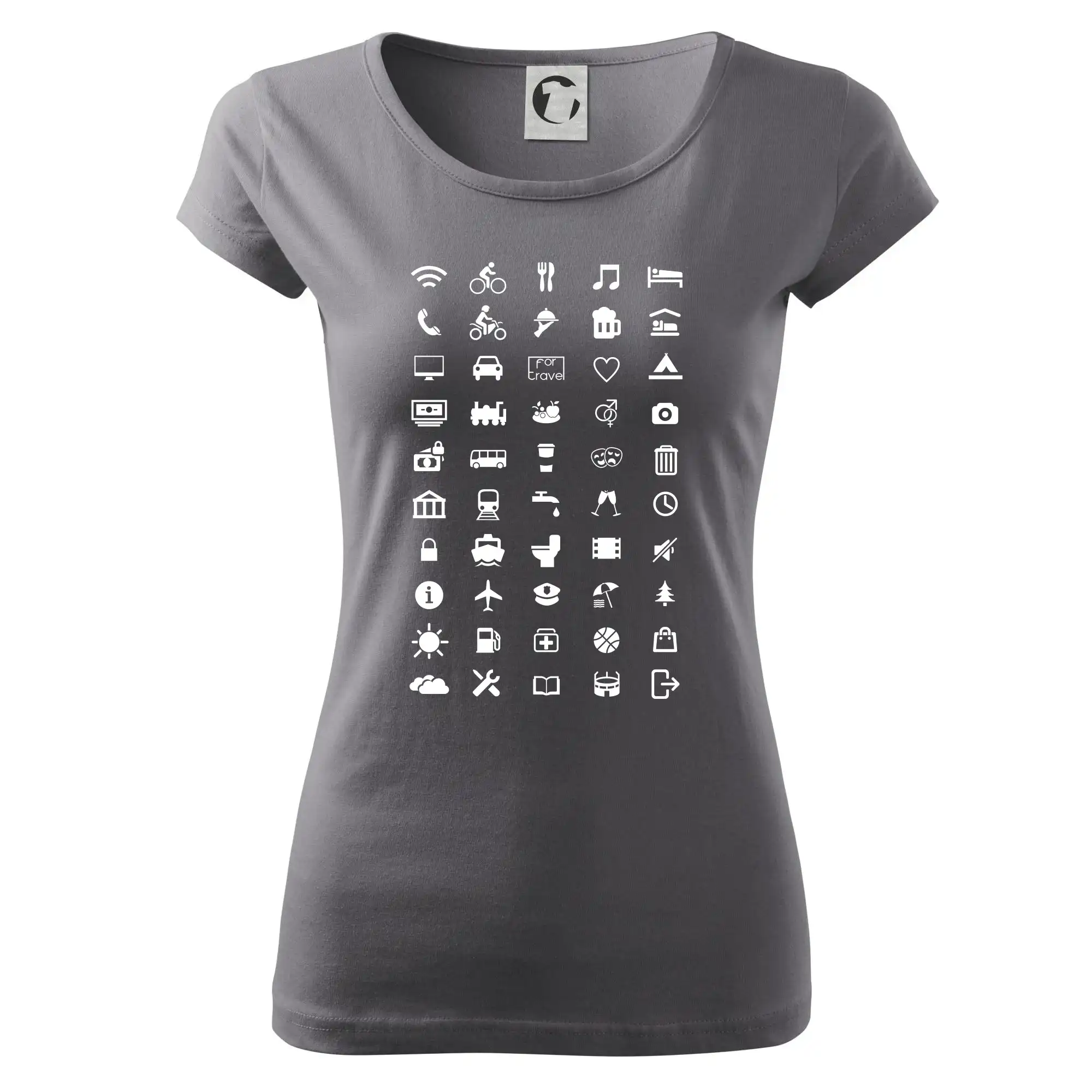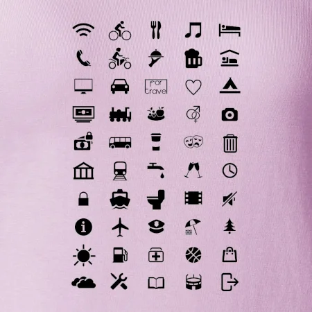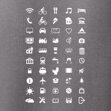 Cestovateľské tričká pre jednoduchšiu dohodu. Šikovné tričko s ikonami na cestovanie, dohodneš sa s každým!