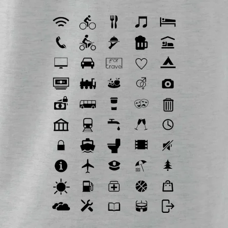 Cestovateľské tričká pre jednoduchšiu dohodu. Šikovné tričko s ikonami na cestovanie, dohodneš sa s každým!