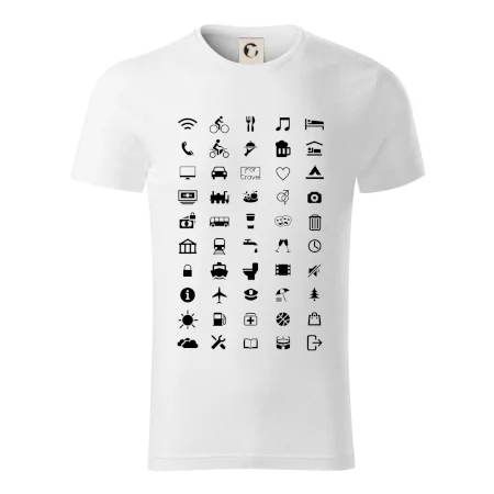 Cestovateľské tričká pre jednoduchšiu dohodu. Šikovné tričko s ikonami na cestovanie, dohodneš sa s každým!