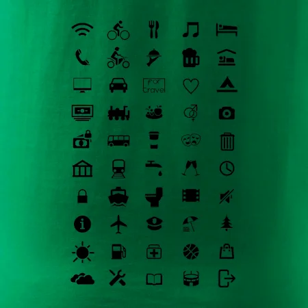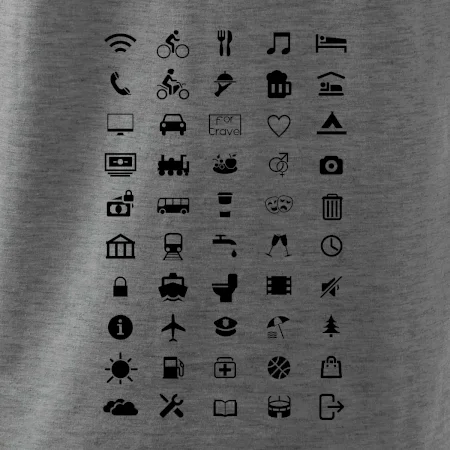 Cestovateľské tričká pre jednoduchšiu dohodu. Šikovné tričko s ikonami na cestovanie, dohodneš sa s každým!
