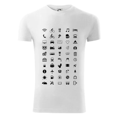 Cestovateľské tričká pre jednoduchšiu dohodu. Šikovné tričko s ikonami na cestovanie, dohodneš sa s každým!