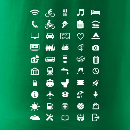 Cestovateľské tričká pre jednoduchšiu dohodu. Šikovné tričko s ikonami na cestovanie, dohodneš sa s každým!