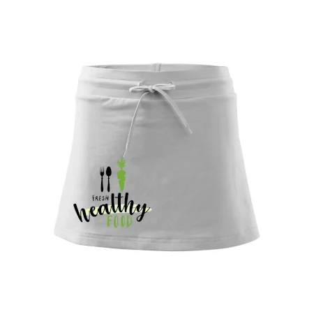 Dámska kraťasová sukňa MALFINI Two in One 604 je perfektnou kombináciou sukne a šortiek, ideálna na šport, voľný čas alebo ležérne nosenie. Vďaka prídavku elastanu si sukňa zachováva tvar a ponúka pohodlie pri pohybe. Krátky strih do tvaru „A“ a široký elastický pás so sťahovacou šnúrkou zabezpečujú voľnosť a prispôsobenie.