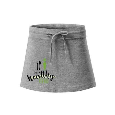 Dámska kraťasová sukňa MALFINI Two in One 604 je perfektnou kombináciou sukne a šortiek, ideálna na šport, voľný čas alebo ležérne nosenie. Vďaka prídavku elastanu si sukňa zachováva tvar a ponúka pohodlie pri pohybe. Krátky strih do tvaru „A“ a široký elastický pás so sťahovacou šnúrkou zabezpečujú voľnosť a prispôsobenie.